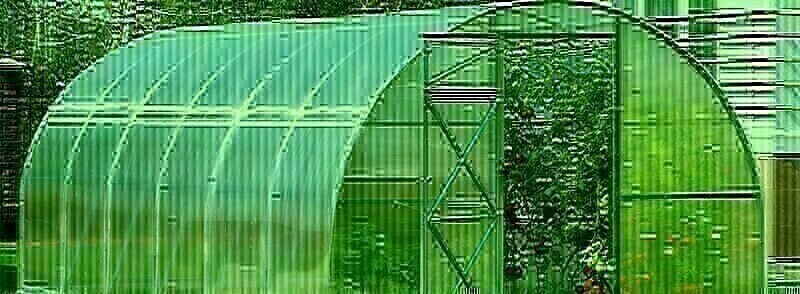 Visuniversālākais un praktiskākais materiāls šodien. Siltumnīcas no polikarbonāta sver 6 reizes mazāk nekā stikls, viegli uzstādīt un izjaukt. Konstrukciju var atstāt ziemā ārā līdz pat -40°C. Materiālam ir augsta izturība: tas nebaidās no nokrišņiem, tai skaitā no sniega uz jumta, mehāniskām iedarbībām. 1 m2 polikarbonāta var izturēt līdz 80 kg slodzes bez deformācijas riska. Turklāt materiāls ir ekoloģisks un nav pakļauts degšanai. Iekšpusē var uzstādīt sildītājus, nav jāuztraucas par nejaušu uzliesmošanu un sienu bojājumiem. Siltumizolācija ir 3 reizes lielāka nekā plēvei un stiklam. Vienmērīgi augsta gaismas caurlaidība nodrošinās pietiekamu saules gaismas daudzumu visiem augiem. Visas šīs priekšrocības dod iespēju izmantot polikarbonāta siltumnīcu visu gadu. Protams, materiāla cena ir augstāka nekā plēvei vai neaustam tentam, bet tā ir tāda konstrukcija, kas kalpos ilgāk par 10 gadiem.