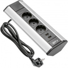 Galdā iebūvējama rozete, 1x schuko, 1xUSBA, 1xUSB, 1.5m, melns, AE-GMW1STOW-20 GTV