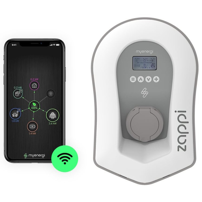 Elektrisko auto lādētājs zappi 1.4-22 kW, balts/pelēks, type 2; ZAPPI-2H22UW-T MyEnergi