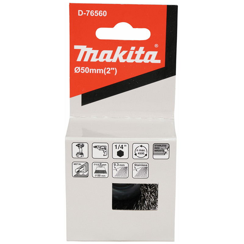 Kausveida birste 50mm, 1/4" HEX gofrēti tērauda sari D-76560 MAKITA
