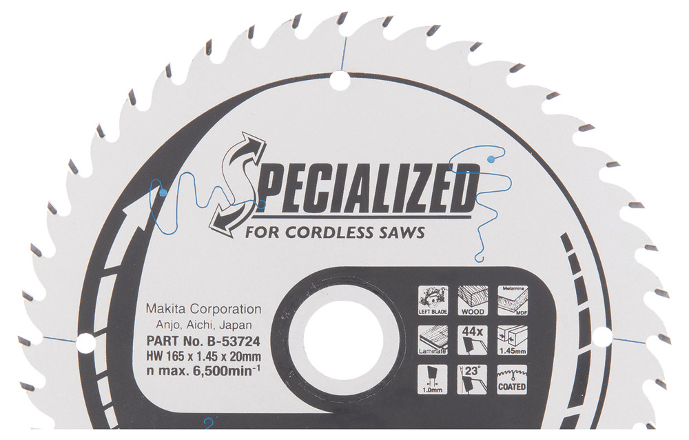 T.C.T. Zāģripa SPECIALIZED 165X1.45X20mm 23° T44, B-53724 MAKITA