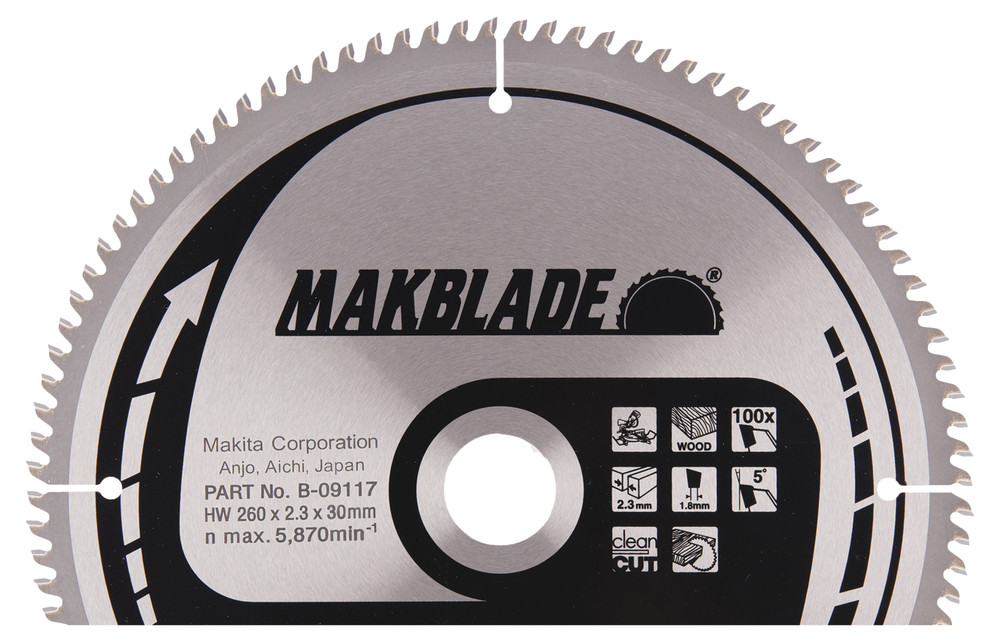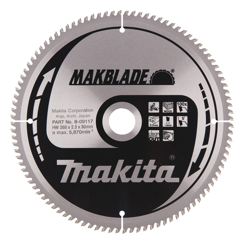 T.C.T. Zāģripa MAKBLADE 260X2.3X30mm 5° T100, B-09117 MAKITA