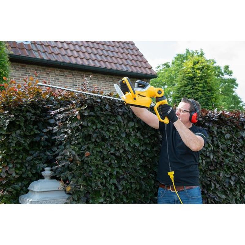 Ideal for large hedges: This hedge trimmer features a double action blade, 690 mm in length, making it ideal for large hedges. The longer the blade, the more you can cut in just one swift movement.