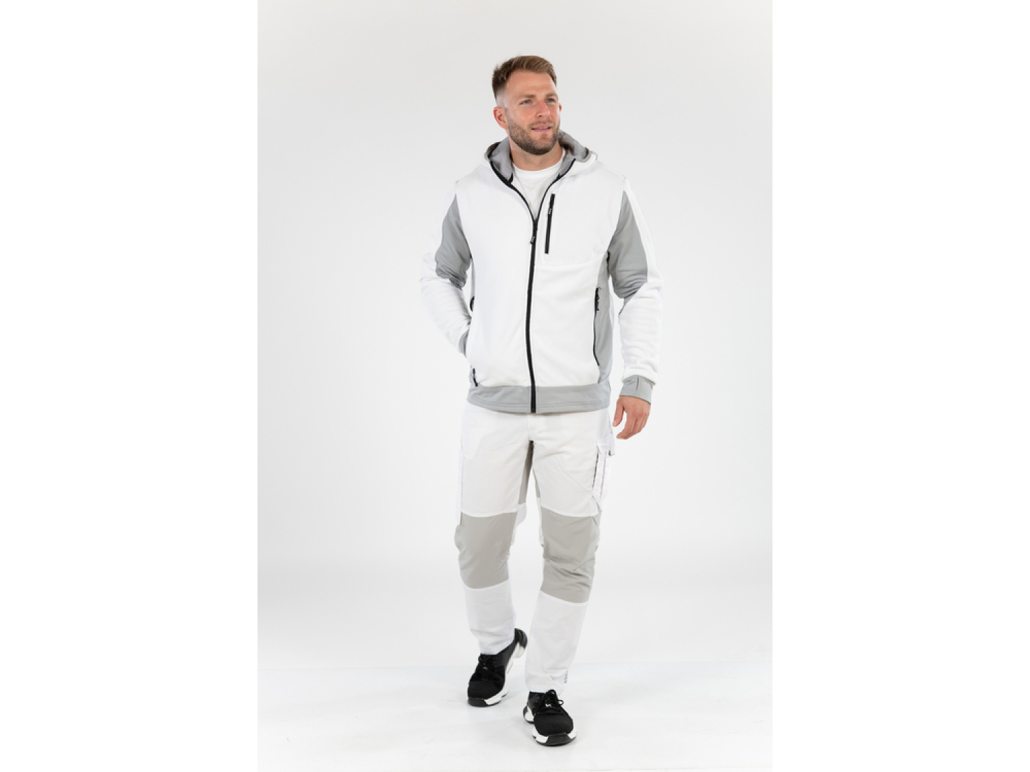 The main material consists of a well-balanced blend of cotton and polyester, enhancing tear resistance and ensuring good air circulation. The contrasting inserts made of nylon and elastane greatly improve comfort, particularly in demanding environments.