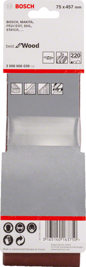 Slīplente kokam 75x457,K220, 3 gab., Lentes slīpmašīnām PRO X440 SLĪPLENTA, 2608606039, BOSCH