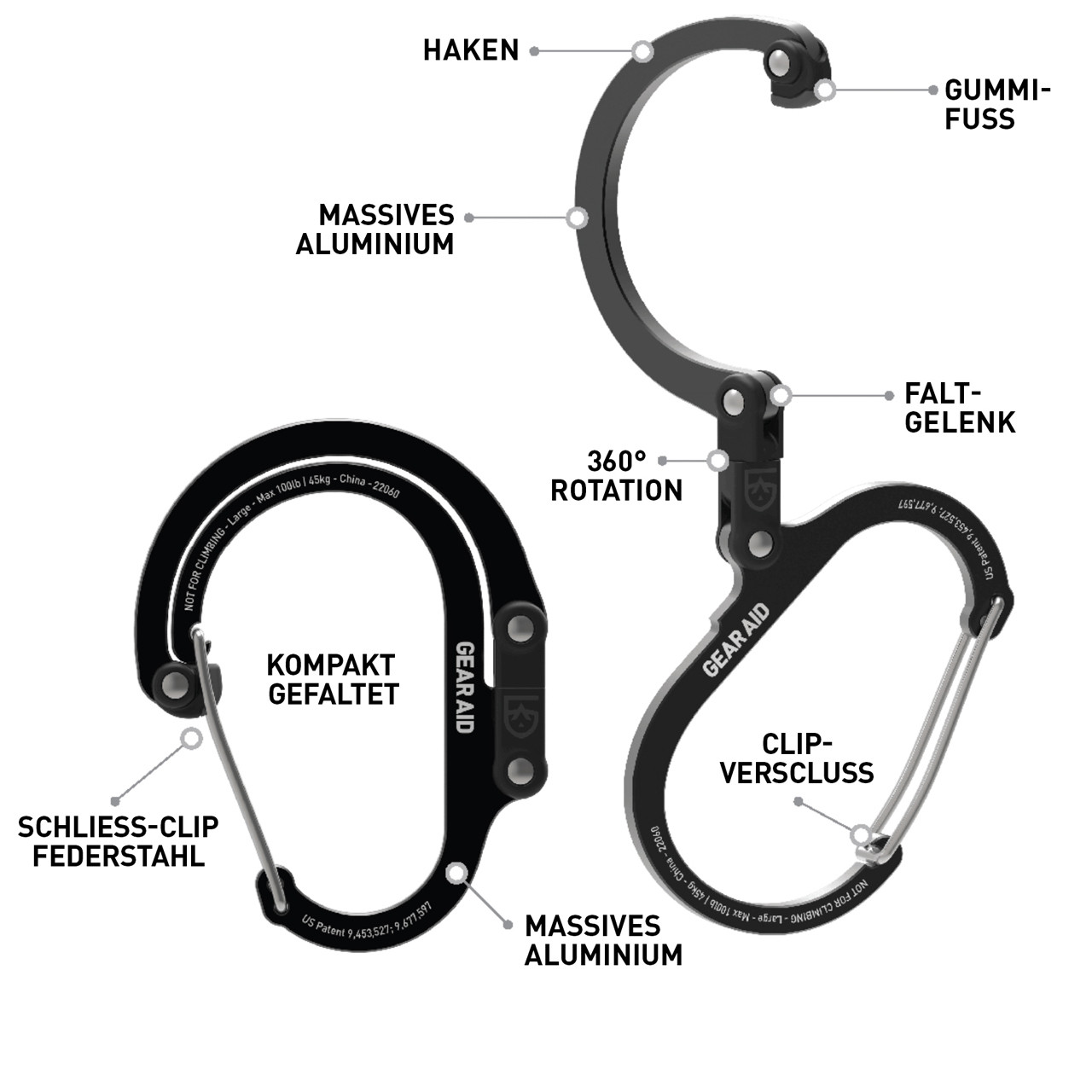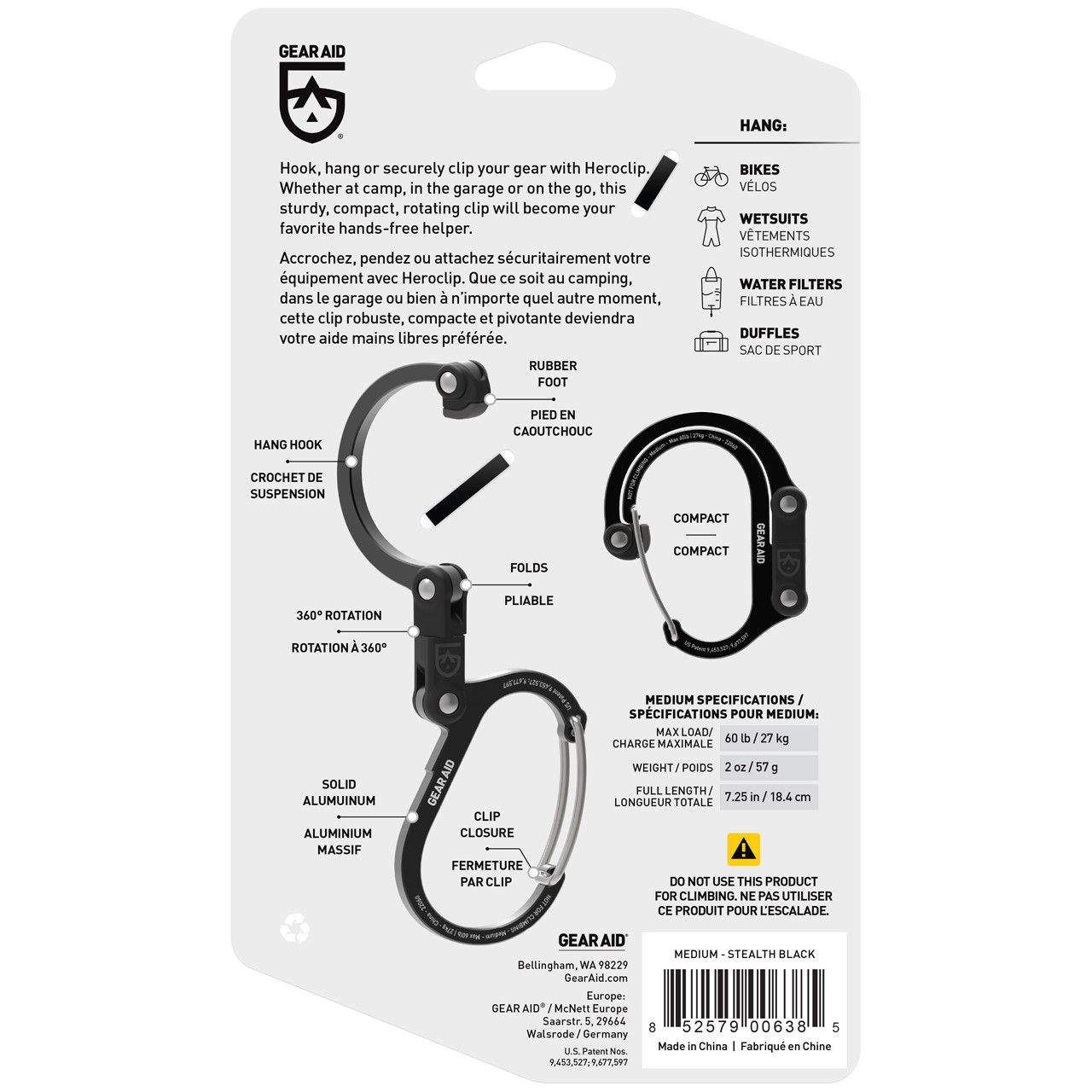 Heroclip, kompakts un izturīgs 360° rotējošs āķis, R763158, GEARAID
