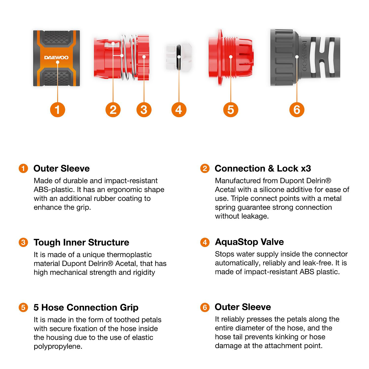It is perfectly compatible with DAEWOO watering system and irrigation tools of other manufacturers.