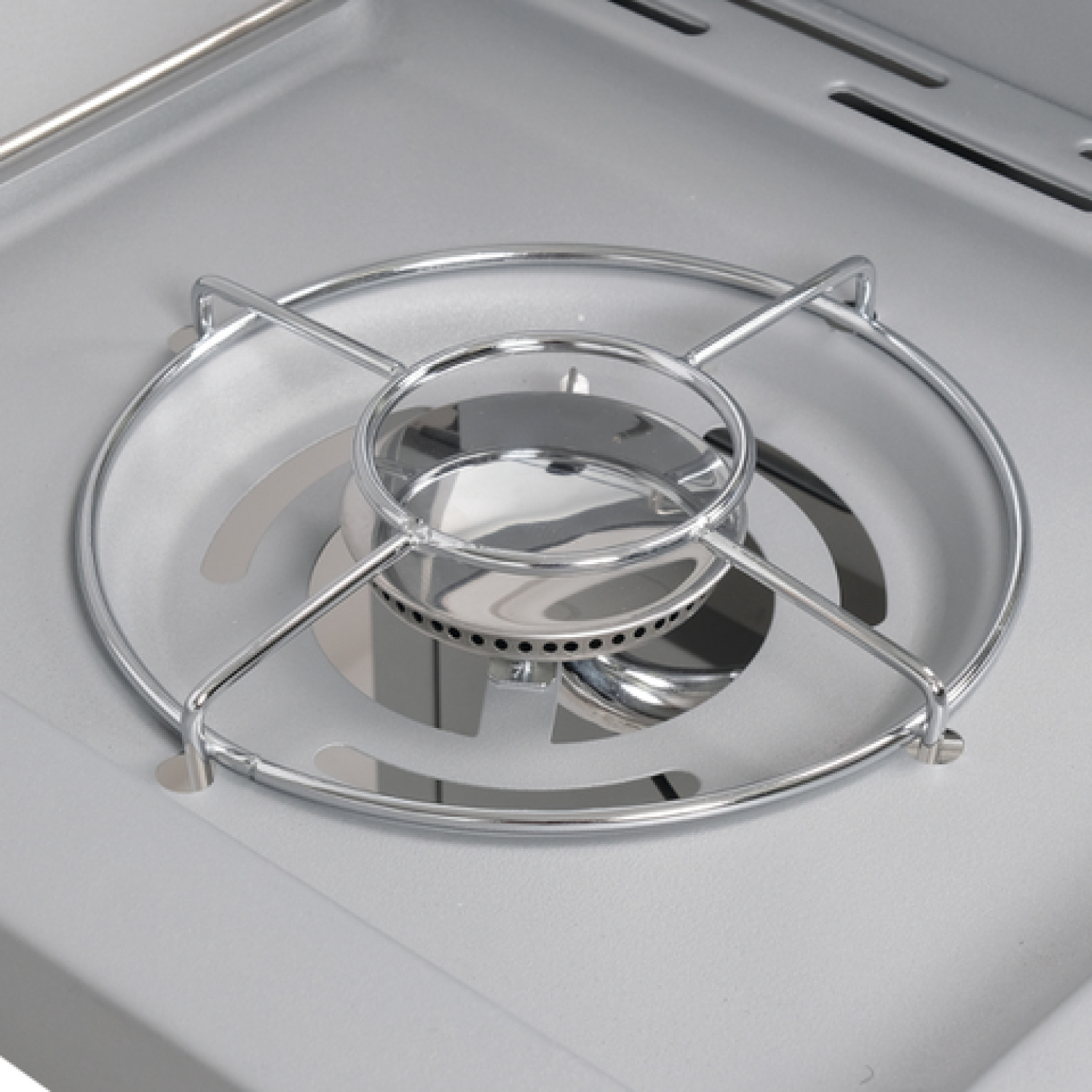 Number of burners: 4+1; 4 main stainless steel burners each with 3.2 kW and 1 side burner with 3.2 kW, total power: 16 kW.