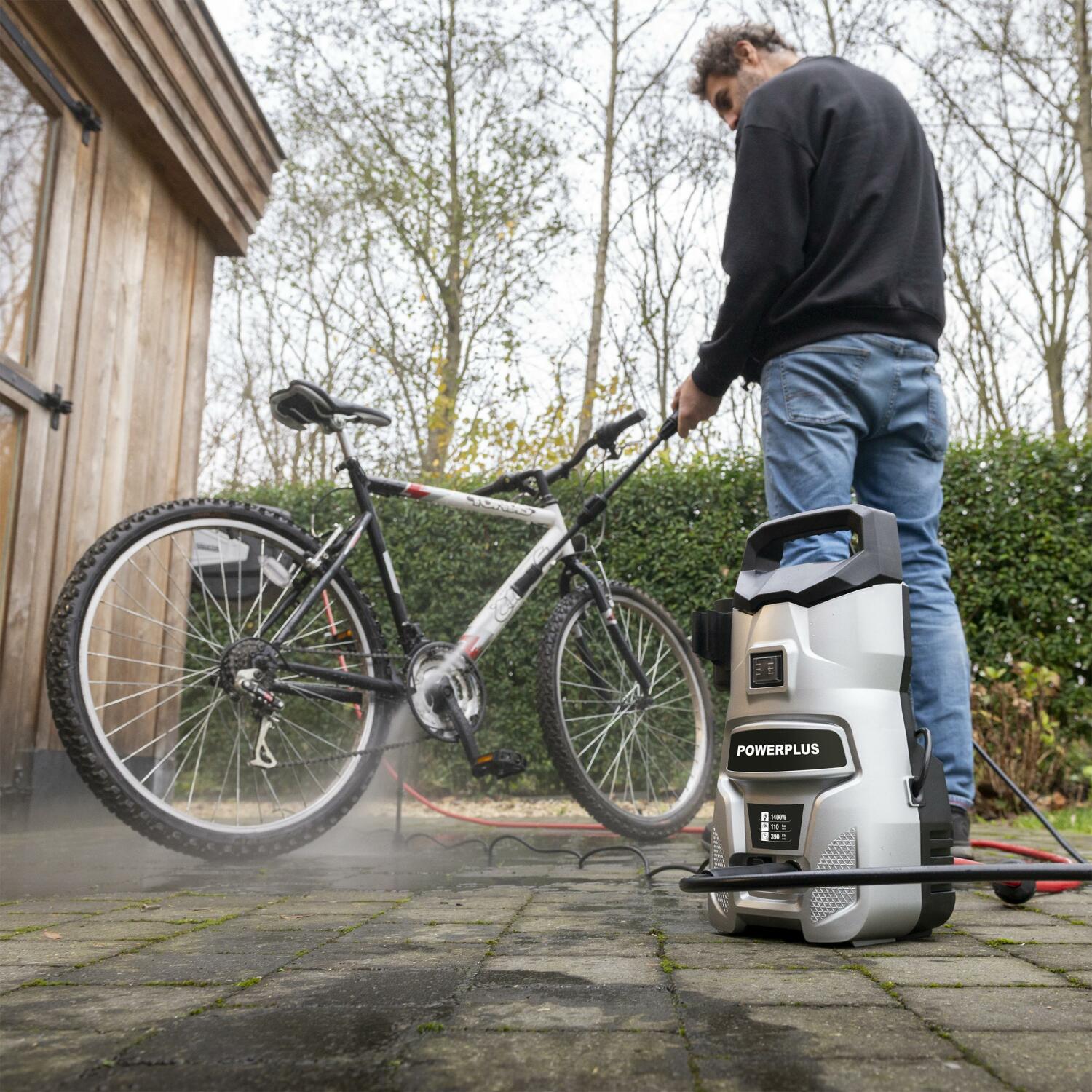 This high pressure cleaner offers a maximum water pressure of 110 bar, ideal for light cleaning tasks, such as washing your bike or small patio areas.