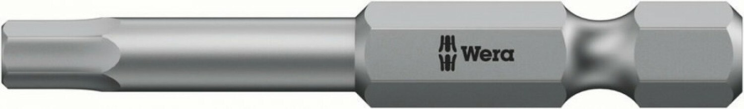 The WERA 840/4 Z bit is a durable screwdriver attachment designed for tough materials like sheet steel or metal. Ideal for high-torque applications, this 1/4" drive hex bit features a 5.0x50mm hex blade, making it suitable for both hexagon bit holders and direct drives.