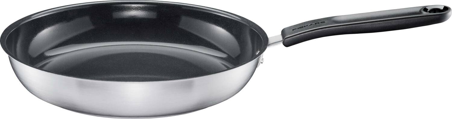 The convenient Fiskars functional form frying pan is Ideal for daily cooking, especially for roasting eggs, vegetables and fish, and has exactly the right size for an incredibly versatile kitchen utensils. The 26 cm pan body is made of durable, 90% recycled stainless steel and can be used on all types of cooker, including induction. The pan is equipped with a plastic-free, non-stick Ceratec™ ceramic coating, which is easy to clean and dishwasher-proof. The functional form frying pans have a 3-layer base for optimum heating and even roasting, as well as a handle that remains cool and is therefore easy to grip. The pan has a maximum roasting temperature of 270 ºC and is up to 150 ºC oven-proof for recipes where the pan needs to be pushed into the oven, WAS allows a seamless cooking process. Made in Finland in the ISO 14001 certified Fiskars factory.