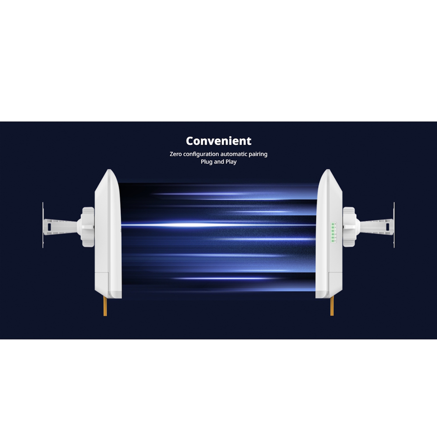 Designed with an IP54-rated enclosure, passive PoE support, and plug-and-play pre-pairing, it’s a turnkey solution for linking two LAN segments wirelessly with minimal effort and maximum reliability.