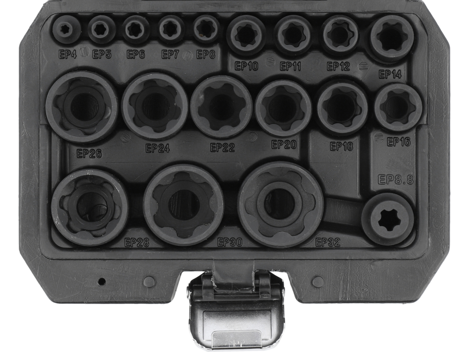 The Socket Set 19 PCS is a set of specialized external Torx Plus (EP) sockets, allowing for the disassembly and assembly of connector elements, including non-standard ones, used in many modern vehicles. Torx Plus sockets provide a larger contact surface, ensuring a firmer grip and safe operation with connectors that standard Torx sockets cannot manage.