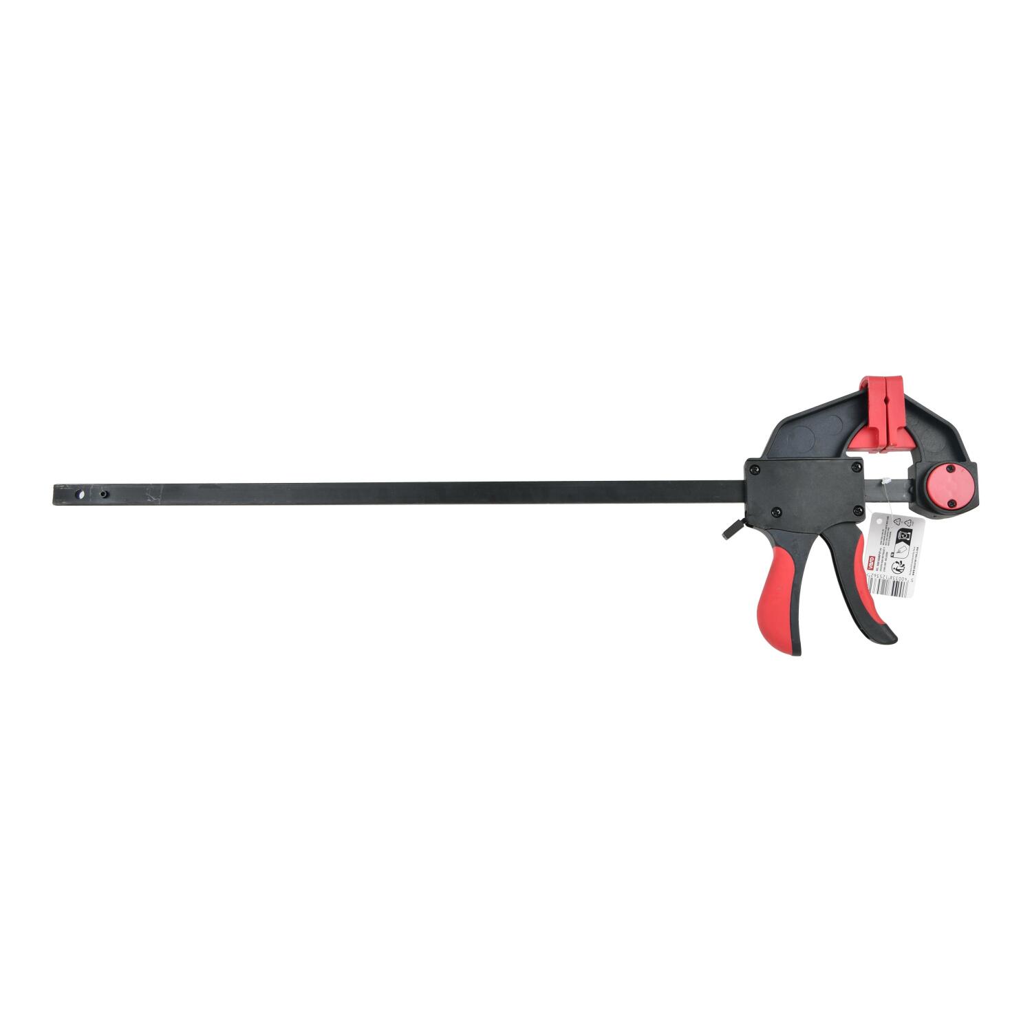 The clamp is easy to use and features a wide reach of 450 mm. The soft rubber handle provides a comfortable grip while working. Releasing the clamp after use is quick, easy, and can be done with one hand.