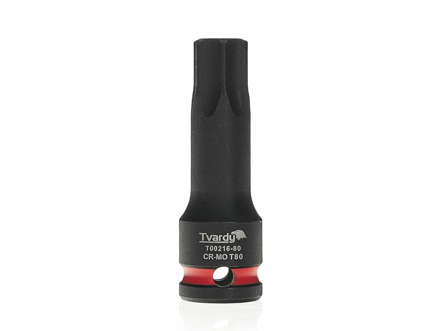 The Tvardy TORX Impact Socket with 1/2" drive in T80 size is designed for heavy-duty tasks in automotive workshops, heavy industry, and machinery assembly.