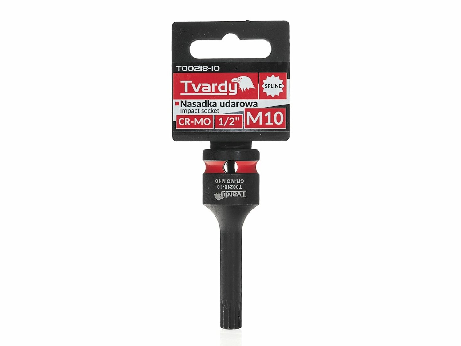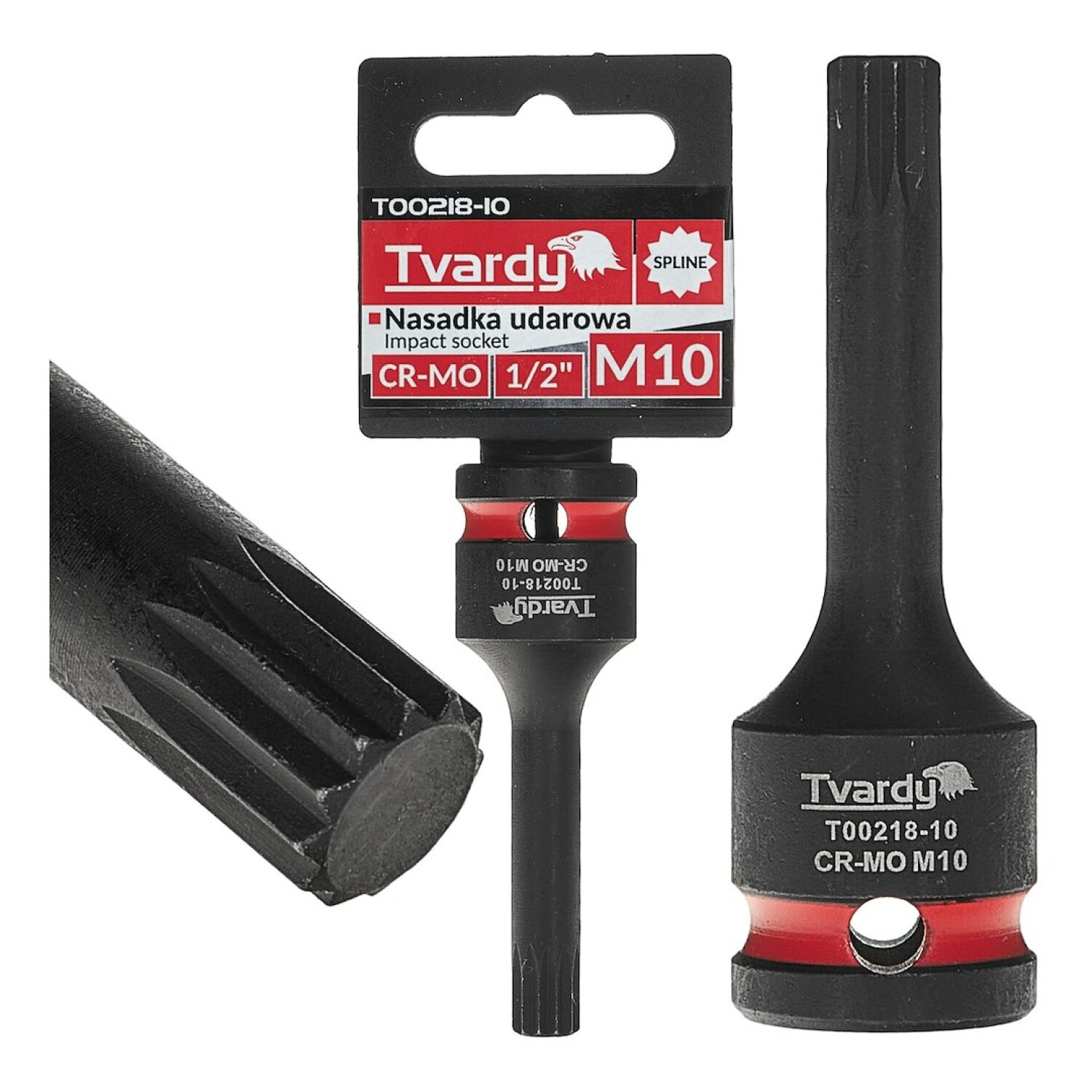 The SPLINE impact socket 1/2" M10 CR-MO by Tvardy is a professional-grade tool designed for heavy-duty use with impact wrenches. It is essential in automotive workshops, industrial environments, and for assembly of structures utilizing SPLINE socket connections.