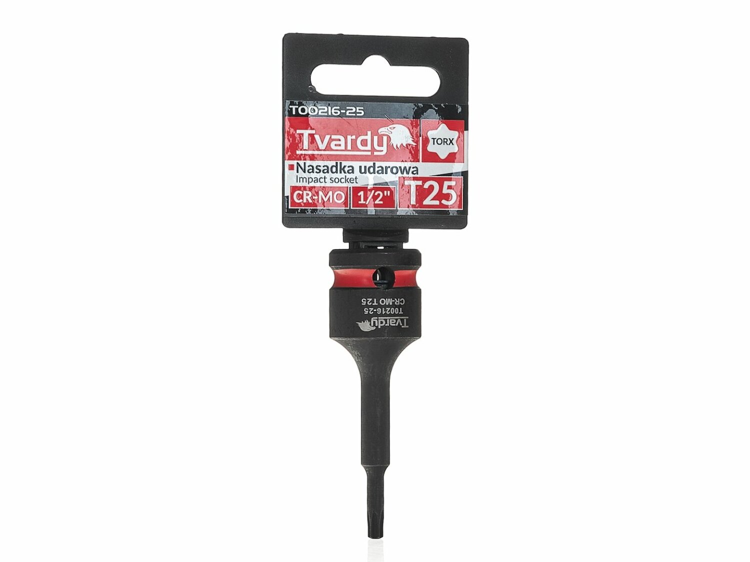 The TORX impact socket 1/2" T27 CR-MO by Tvardy is a professional tool designed for heavy-duty tasks with impact wrenches. It is indispensable in automotive workshops, industrial settings, and for assembling structures requiring TORX socket connections.