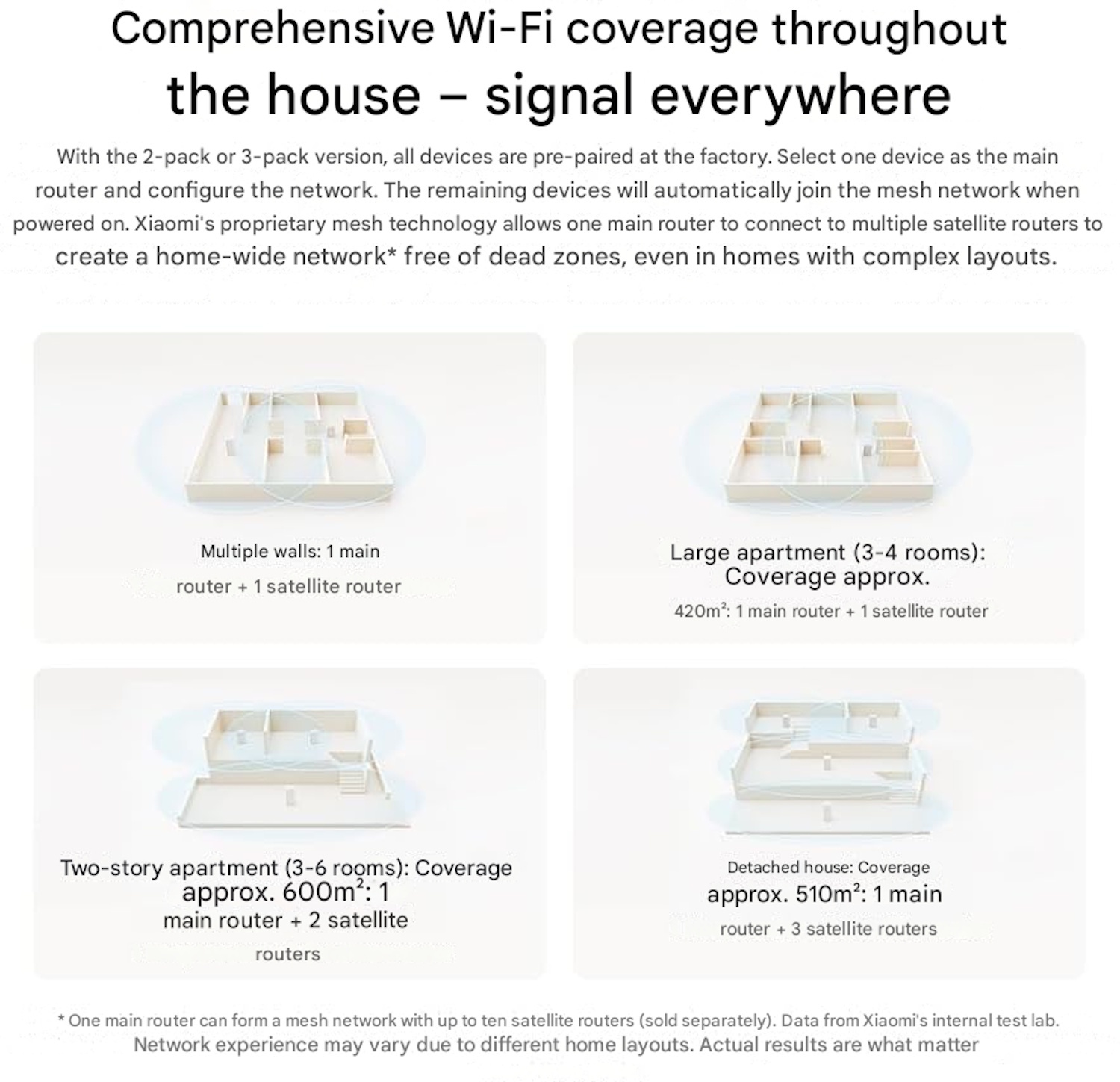 Wi-Fi mesh system with AX3000 high-speed performance, dual-band 2.4/5 GHz connectivity, and 2 routers/extenders Mesh System AX3000 NE Xiaomi