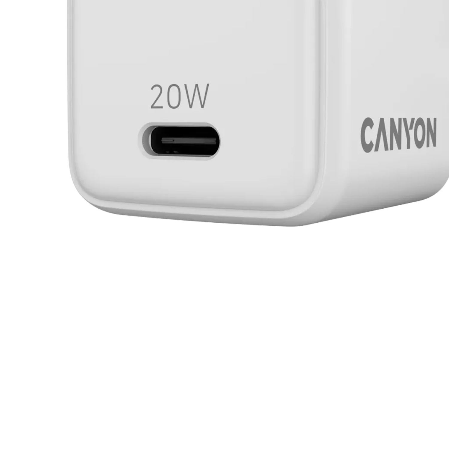 CANYON CU20C is a compact wall charger featuring modern GaN technology and 20 W power output, delivering fast and safe charging for everyday devices. The USB-C Power Delivery port enables efficient charging of smartphones and accessories with optimal power delivery. An ideal solution for home, office, and travel use.