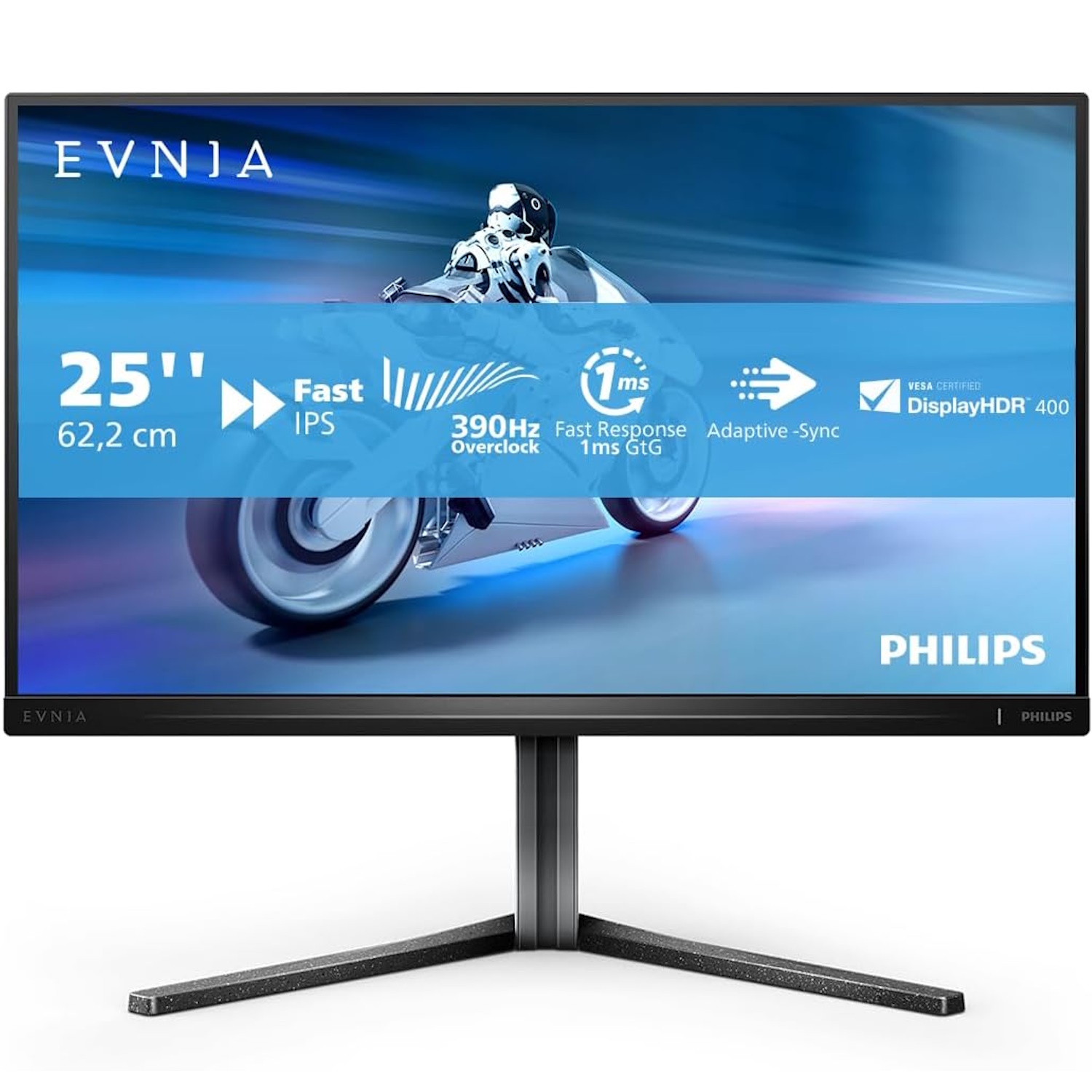 The Philips 25M2N5200U/00 gaming monitor is a high-performance 25″ (24.5″ class) FHD display with an exceptionally high 390 Hz refresh rate and a 0.3 ms response time, designed for competitive gaming environments. A Fast IPS panel, USB hub, and a bright 400 cd/m² screen deliver maximum speed, precision, and comfort for extended gaming sessions.