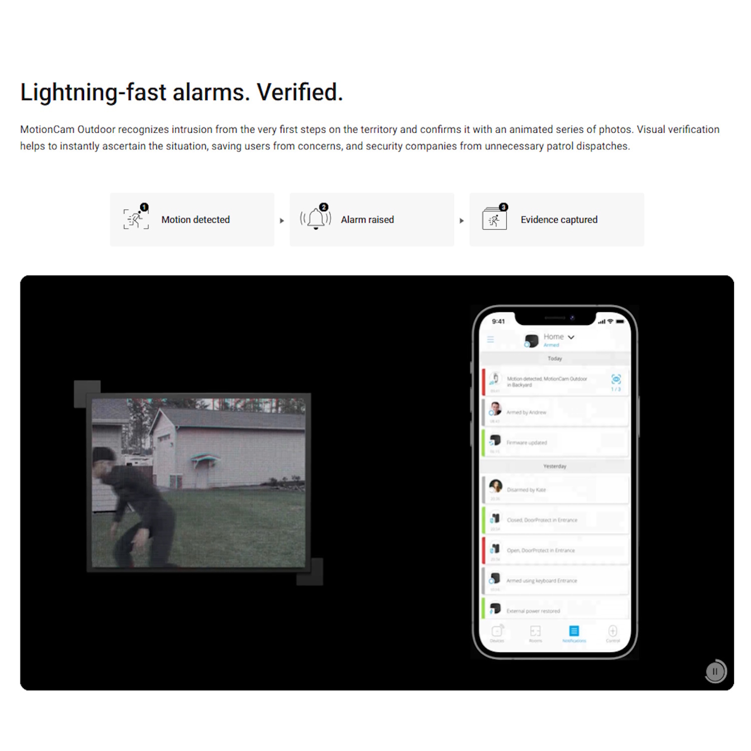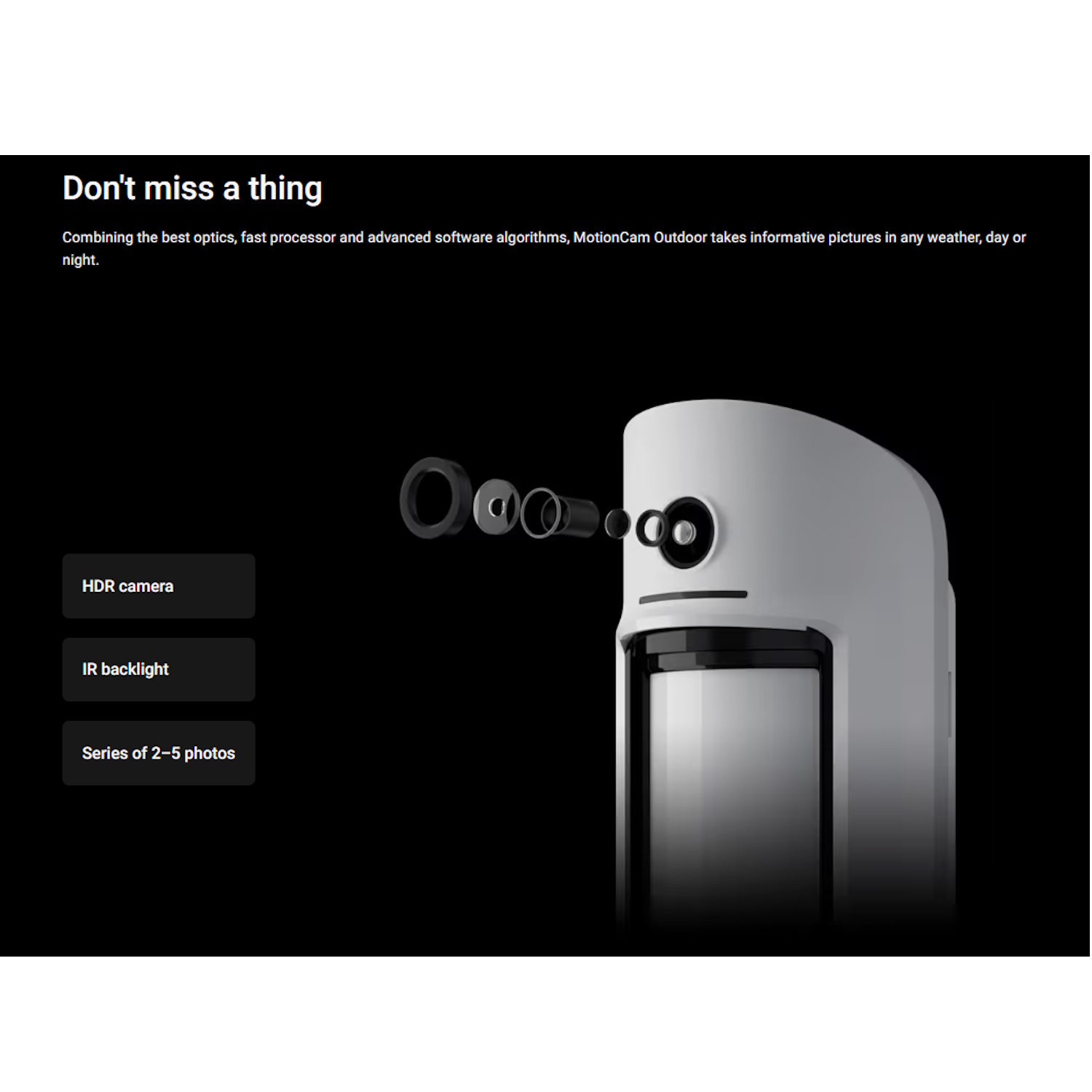 Ajax MotionCam Outdoor Jeweller combines motion detection with photo verification, enabling faster identification of real threats compared to classic PIR sensors. Jeweller and Wings wireless technologies ensure fast and secure alarm and image transmission, while IP55 protection and long battery life make it a reliable solution for outdoor perimeter security.