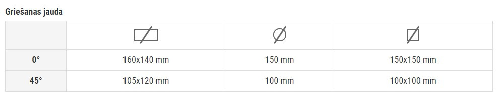 | Horizontal (table) angle for angle sawing | 0º K / 45º L |