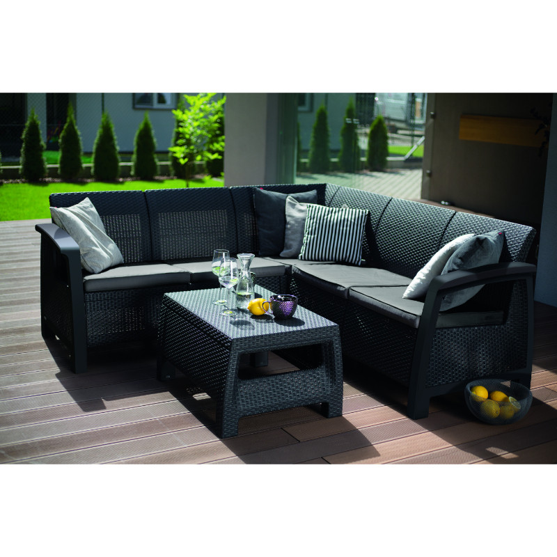 Dārza mēbeļu komplekts stūra dīvāns + galdiņš Bahamas Relax Set pelēks 29205478939 KETER