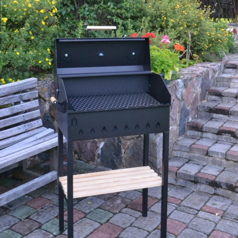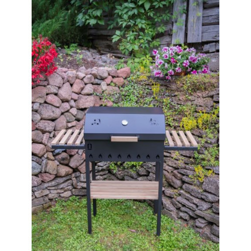 Kokogļu grils ar vāku un plauktiem 330x1200x1100mm, 299101302, ABAS