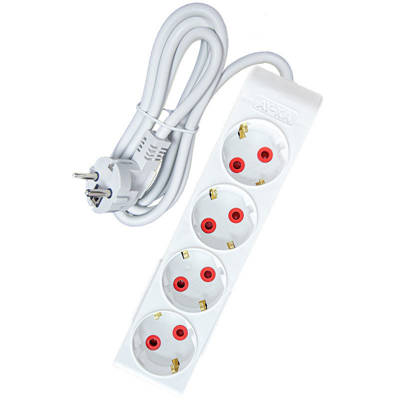 Strāvas pagarinātājs balts, a/z, 4 vietas, 5m AY-KA