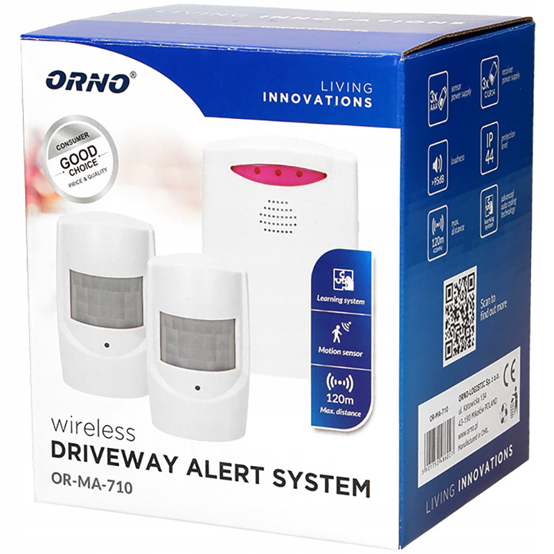 Kustības Sensors ar 2 Bezvadu Indikatoriem IP44, 120m, OR-MA-710 ORNO