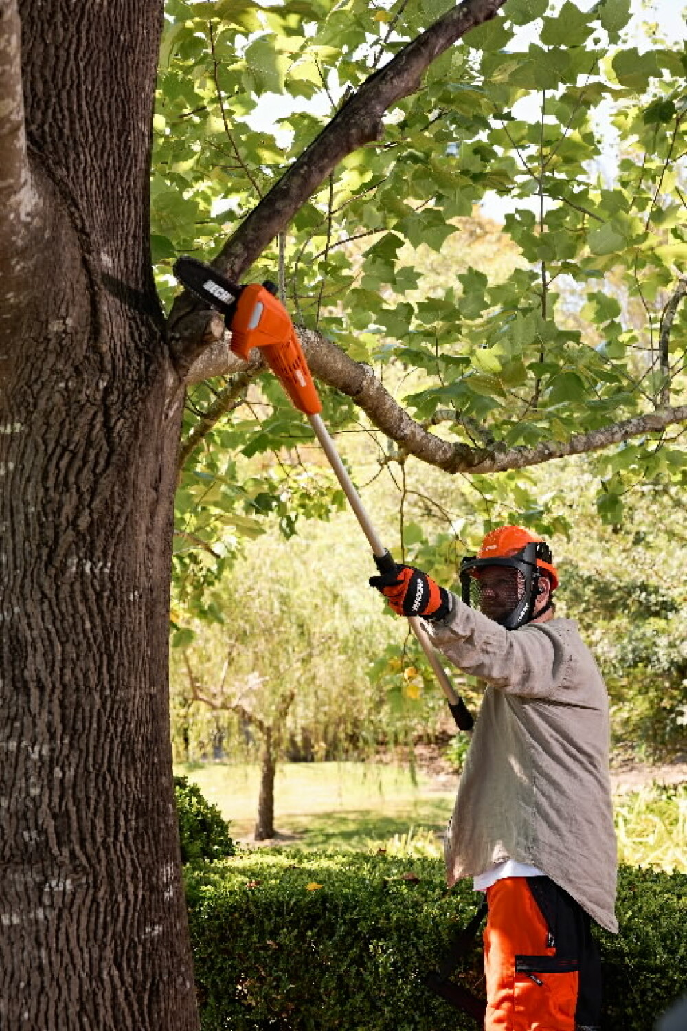 The ECHO DPPF-310 is a battery-operated telescopic branch saw designed for compactness and ease of use. It allows you to accurately reach and trim high branches safely from the ground, thanks to its telescopic shaft.