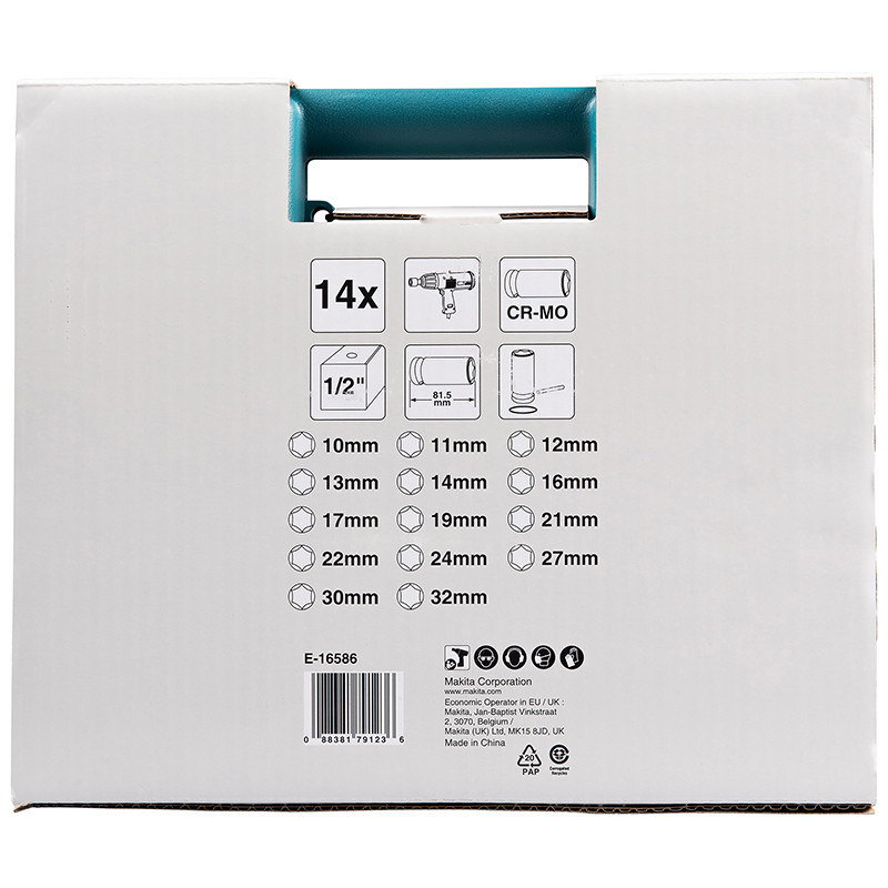 | Muciņas izmērs, mm | 13; 10; 32; 14; 16; 17; 19; 21; 11; 12; 22; 24; 27; 30 |