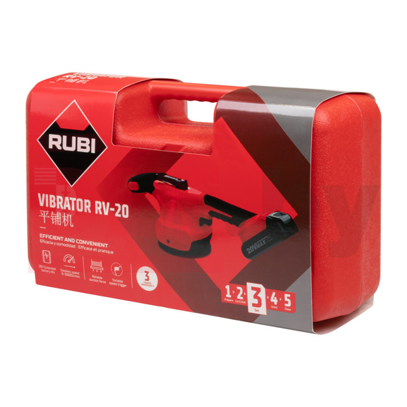 Vibrācijas piesūceknis RUBI ir daudzfunkcionāla mašīna flīžu ieklāšanai, izlīdzināšanai ar vibrāciju.