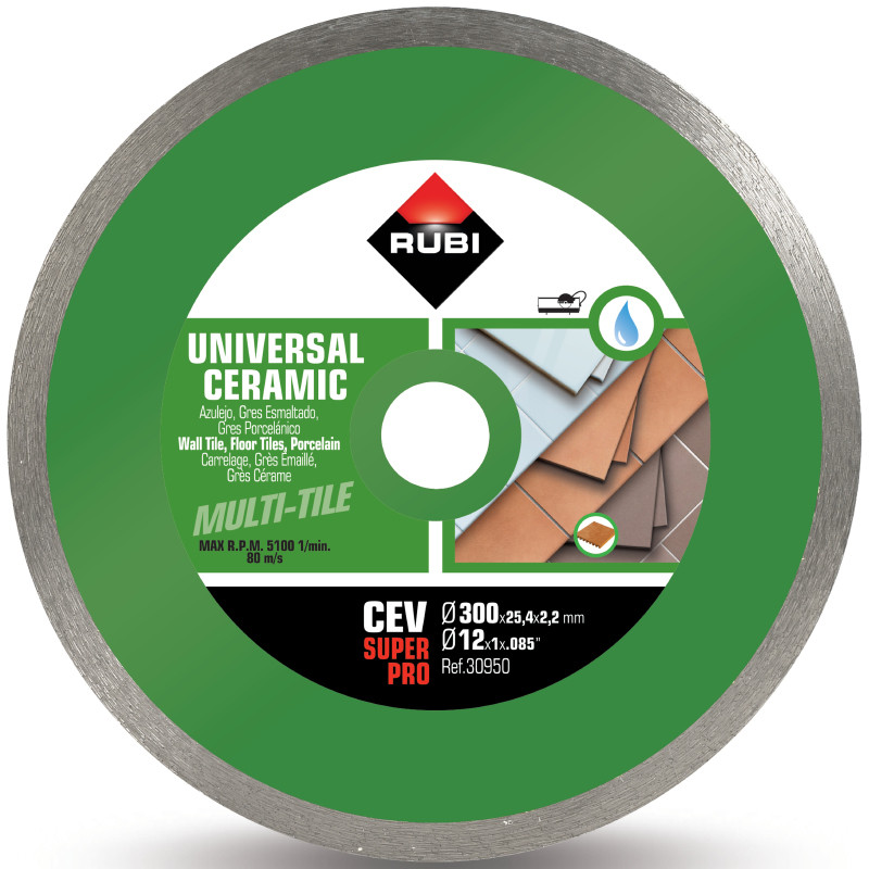 RUBI CEV dimanta disks ir nepārtrauktas lentes disks. Šāda veida dimanta disks sniedz iespēju iegūt augstas kvalitātes apdari. RUBI CEV dimanta asmeņu konstrukcija padara tos ideāli piemērotus visu veidu keramikas un citu akmens pārklājuma materiālu griešanai, kuru biezums ir mazāks par 25 mm.
