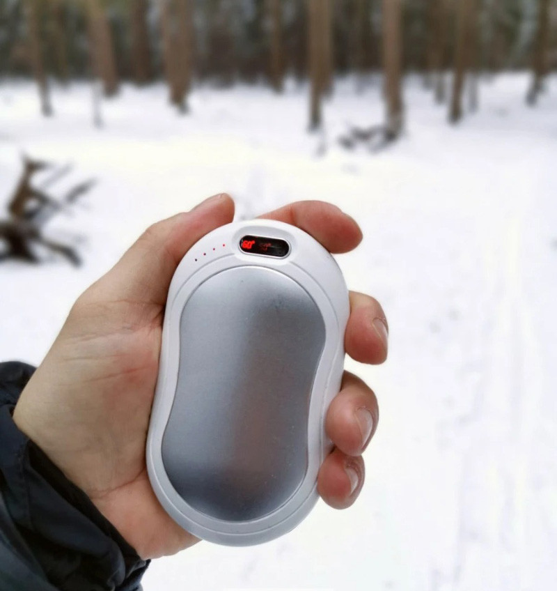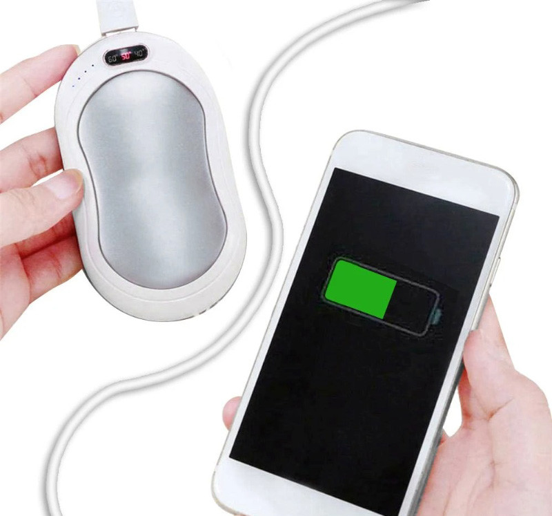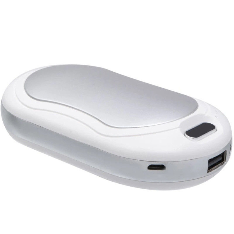 Viegls, kompakts un daudzfunkcionāls USB roku sildītājs ar 10 000 mAh ietilpību, integrētu barošanas bloku, masāžas funkciju un LED gaismu.
