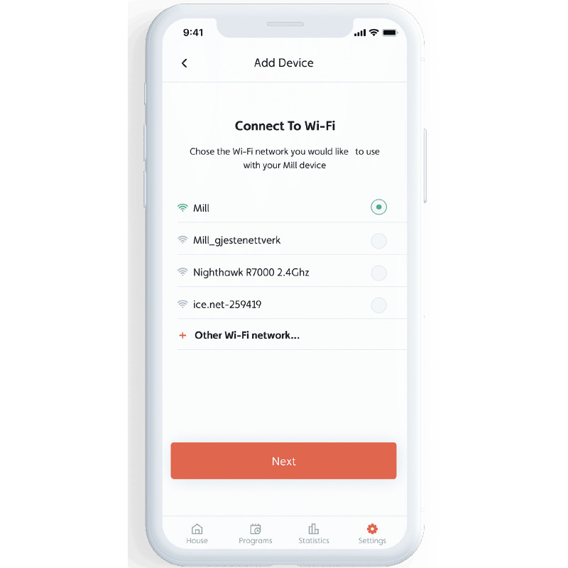 Paneļu sildītājam ir integrēts WiFi modulis. Tas nozīmē, ka nav nepieciešams centrmezgls vai mainās termostats. Sildītājs tiek tieši savienots ar jūsu WiFi tīklu, izmantojot Bluetooth. Pārliecinieties, vai jūsu WiFi maršrutētājam ir pietiekami daudz jaudas, lai atbilstu jūsu mājas tīklam pievienoto aktīvo ierīču skaitam. Šoruden Mill WiFi3 būs iespējams integrēt arī ar Google Assistant, Alexa, Homey un Apple HomeKit.