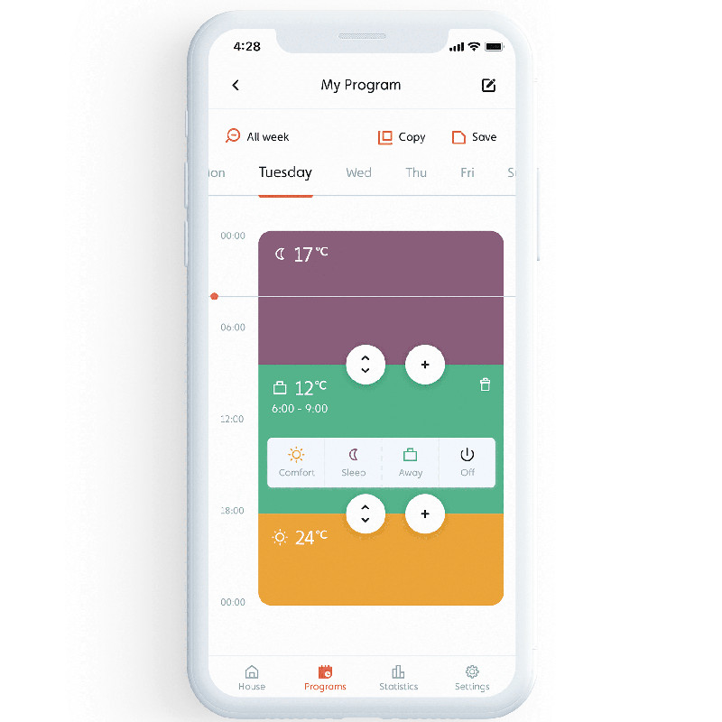 Prognozējošā apkure – sildītājs silda telpu tā, lai noteiktā laikā tiktu sasniegta vēlamā temperatūra. Paneļu sildītājam ir uzlabots algoritms, kas ļauj uzzināt, cik ātri/lēni temperatūra telpā palielinās/pazeminās. Tādā veidā tas zina, kad sākt sildīšanu, lai sasniegtu vēlamo temperatūru lietotnē ieplānotajā laikā.