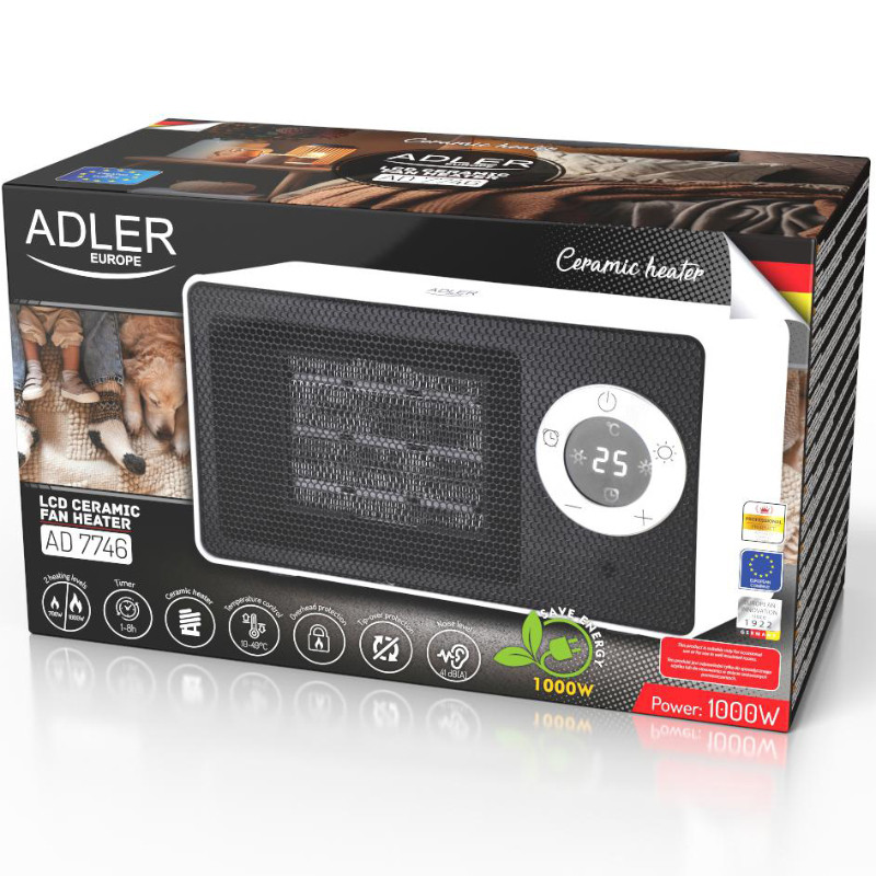 Adler keramikas ventilatora sildītājs ar LCD displeju ir uzlabota ierīce, kas nodrošina efektīvu un ērtu telpu apsildīšanu. Pateicoties inovatīvajai keramikas tehnoloģijai, tā nodrošina ātru un vienmērīgu siltuma sadali, garantējot patīkamu temperatūru katrā stūrī. Viena no galvenajām šī ventilatora sildītāja priekšrocībām ir nolasāmais LCD displejs, kas ļauj intuitīvi kontrolēt un izsekot vēlamo temperatūru telpā. Ierīcei ir taimeris, kas ļauj iestatīt darba laiku no 1 līdz 8 stundām. Regulējama temperatūra no 10°C līdz 49°C ļauj pilnībā kontrolēt vēlamo siltuma līmeni. Pateicoties tam, ventilatora sildītāju var pielāgot dažādiem apstākļiem un lietotāja vēlmēm, nodrošinot optimālu temperatūru gan aukstākās, gan siltākās dienās. Ierīce ir aprīkota ar drošības slēdzi, kas automātiski atslēdz strāvu ierīces apgāšanās un pārkaršanas gadījumā. Adler keramikas ventilatora sildītājs ar LCD displeju ir progresīva ierīce, kas apvieno modernas tehnoloģijas, lietošanas ērtumu un efektīvu apkuri.