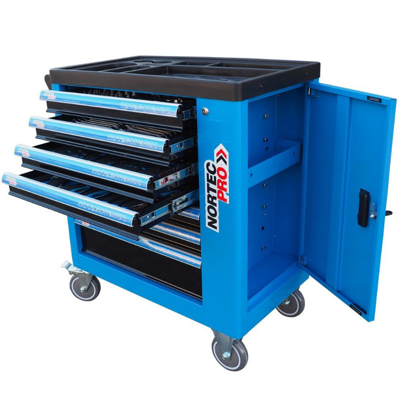 Instrumentu rokturi ir marķēti ar Nortec Pro logotipu. Ratiņiem ir dziļa atvilktne un sānu atvilktne skapis ar paplāti sīkumiem! Turklāt pie skapja tika piestiprināts atslēgu komplekts, kas viņu aizvēra.