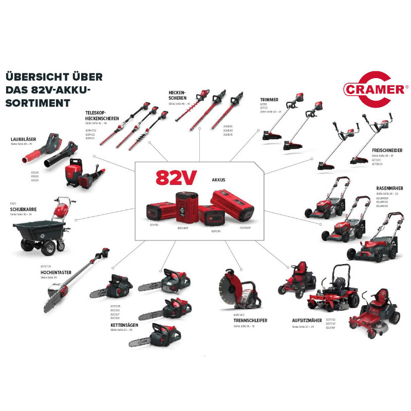 Cramer 82V290P – 82V 4Ah Professional Bluetooth Battery The Cramer 82V290P 82V 4Ah battery features a robust design and the latest lithium-ion cells for a compact design with higher power output. The lithium-ion battery is compatible with all 82V Cramer tools for total flexibility, as well as featuring Bluetooth connectivity.