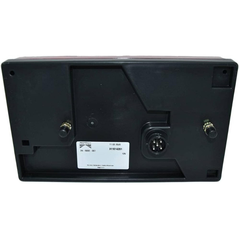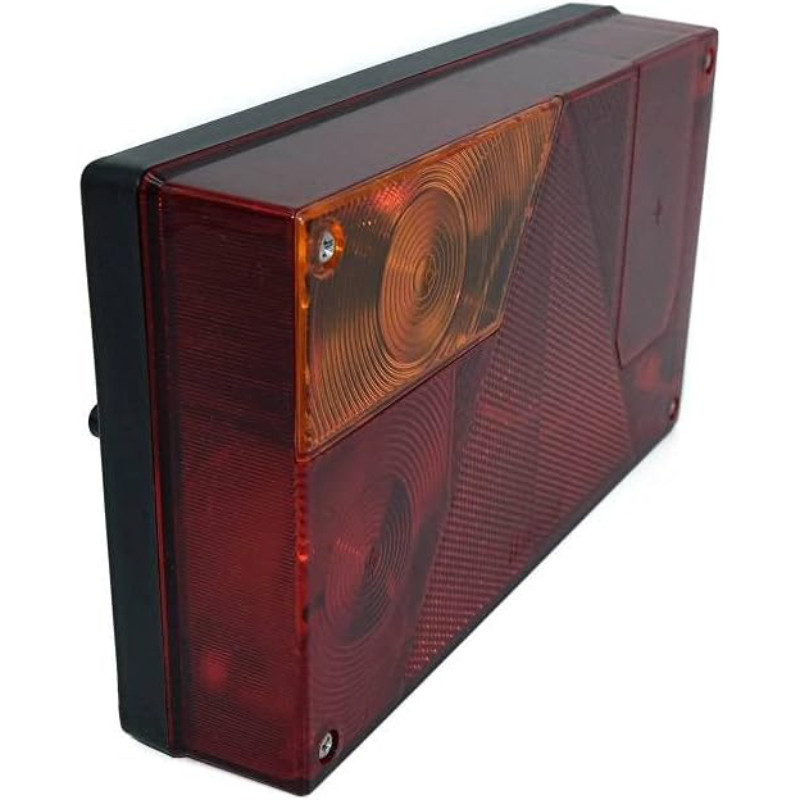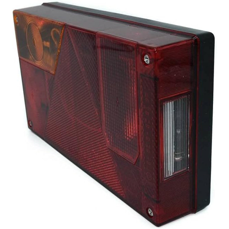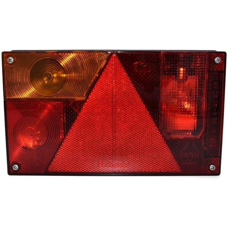 Aizmugurējais kreisais MULTIPOINT I 12V lukturis. Izmēri: 240x140x52 mm, attālums starp stiprinājuma vietām 152 mm.