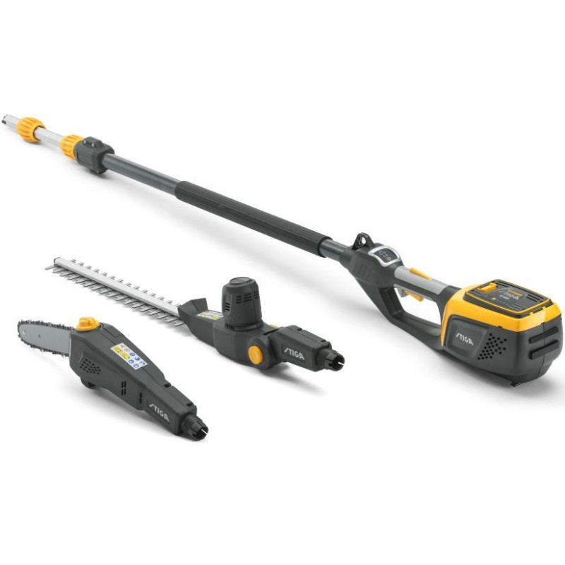 Lai sasniegtu šos cēlos kokus un dzīvžogus, šim dārza multiinstrumentam ir 75 cm teleskopiskais pagarinājums, kas nodrošina maksimālo sasniedzamo augstumu 4,30 m ar dzīvžoga šķēres un 4 m ar atzarošanas zāģi. Aaugstas veiktspējas ķēde uz griešanas stieņa samazina arī atsitienus. Tas ir arī ērts, pateicoties sešu pozīciju 112° rotējošajai pļaušanas galvai, kas ļauj apstrādāt augus bez sasprindzinājuma. Un ar mīksta pieskāriena gumijas rokturi un vārpstu, kā arī uzkabes āķi, jūs pabeigsit savus uzdevumus, nekaitējot rokām un ekstremitātēm. Drošai, ērtai un precīzai griešanai MT 500e ir aprīkots ar buferi zem vadotnes, lai darba laikā atspiestos pret zariem. Baterijas un lādētājs NAV iekļauts komplektā, iespējams iegādāties atsevišķi