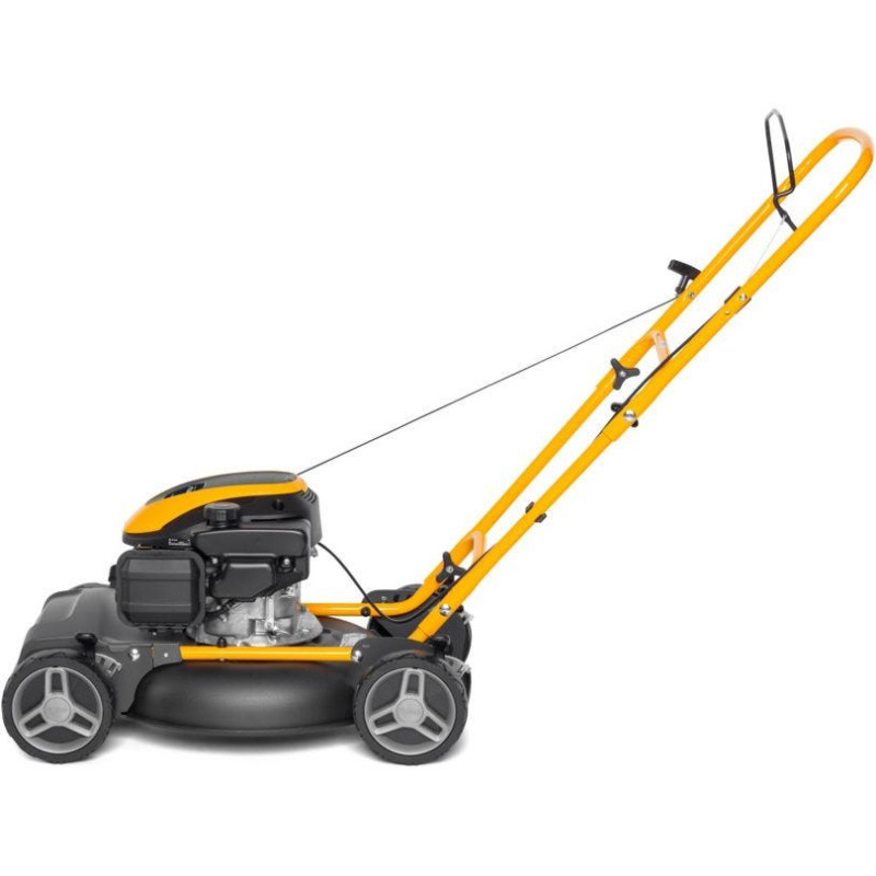 Rokas piedziņas mulčēšanas zāles pļāvējs ar 123 cc benzīna dzinēju.