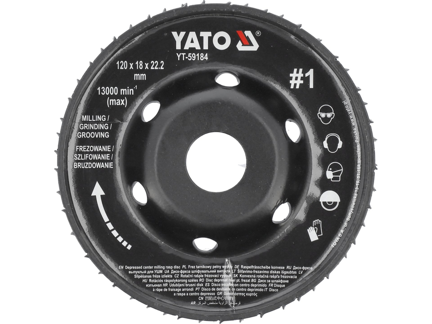 Frezēšanas raspa disks YATO YT-59184 ir universāls un izturīgs griezējs, kas paredzēts darbam ar plašu materiālu klāstu. Tas ļauj veikt slīpēšanu, frēzēšanu un iegriešanu ar augstu precizitāti, apstrādājot koksni, koksnes paneļus, plastmasu, gipsi, gipskartona plāksnes, porainos betonblokus, gumiju, polistirolu, ledus un dzīvnieku nagus. Ierīce tiek izmantota arī asu malu frēzēšanai, virsmu attīrīšanai, vecu aizsargpārklājumu novākšanai, kanālu izveidošanai kabeļiem un elektroinstalācijām, kā arī mākslinieciskam darbam.