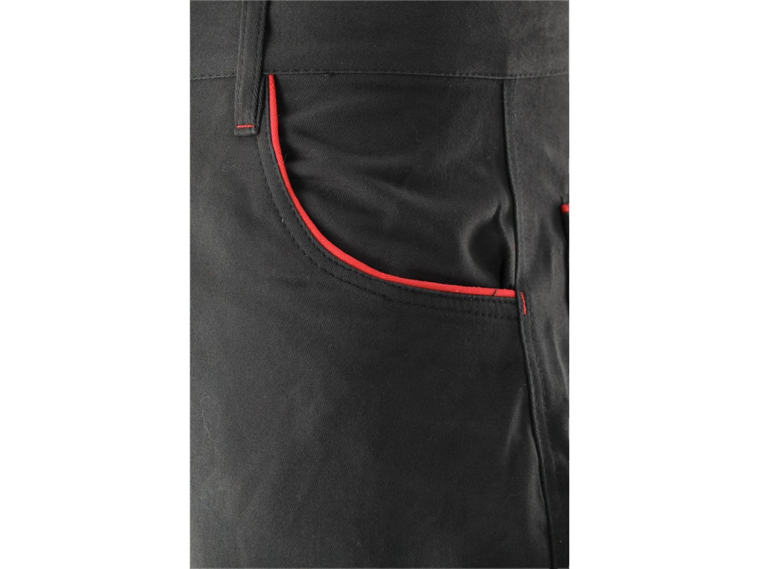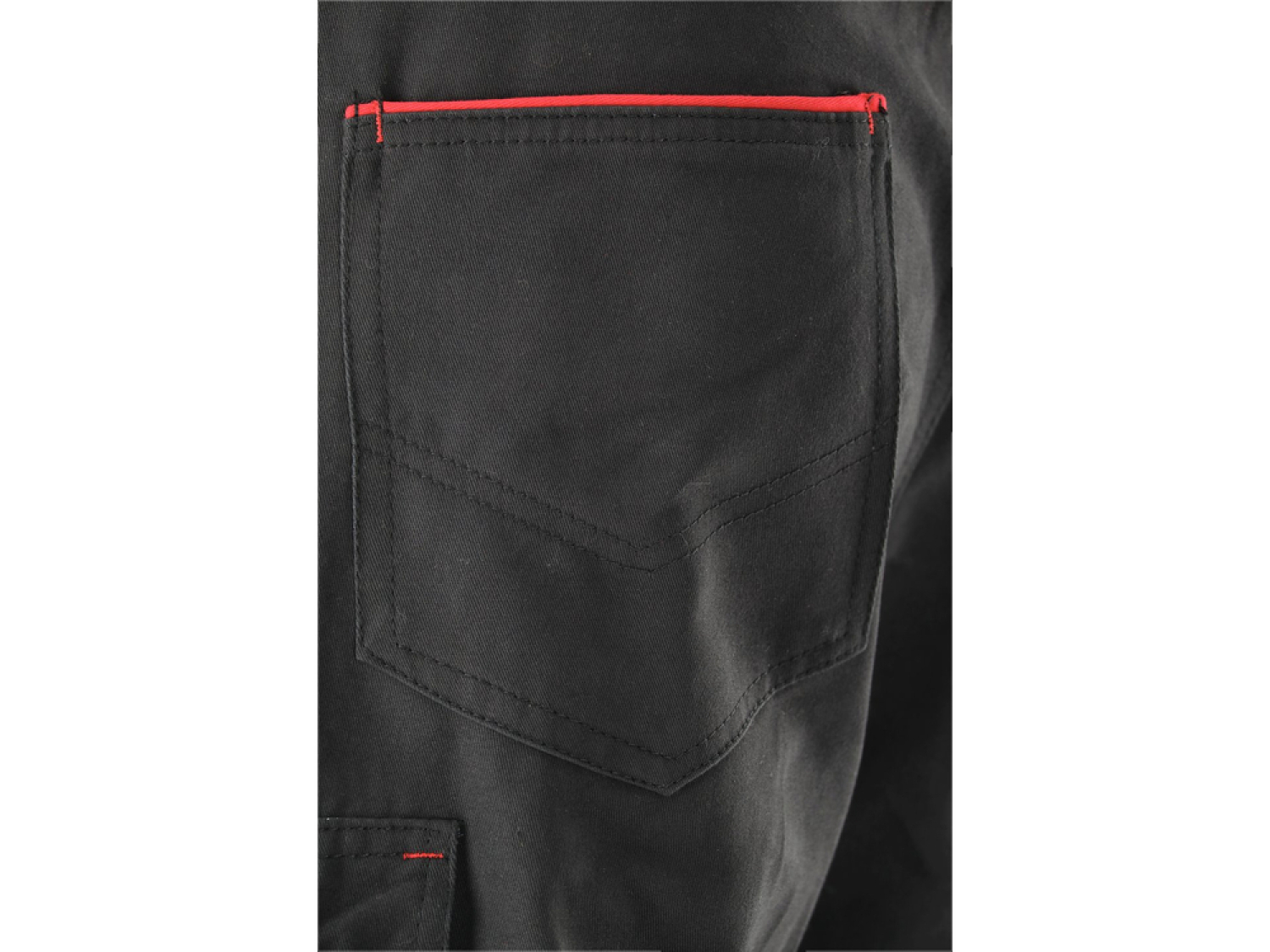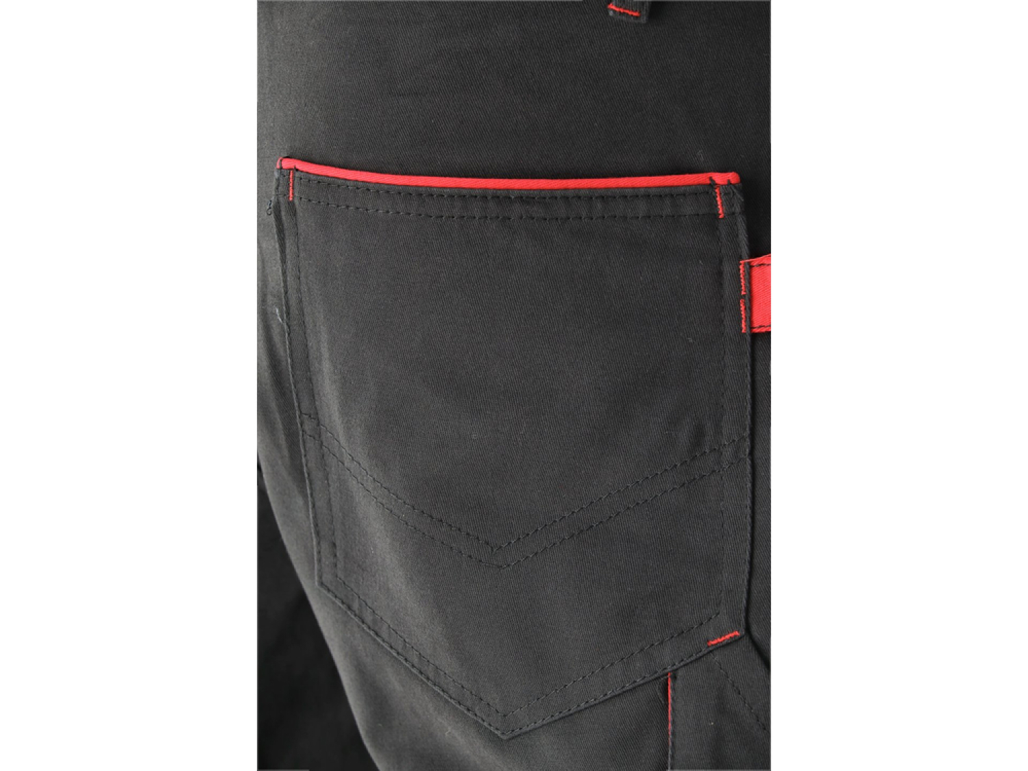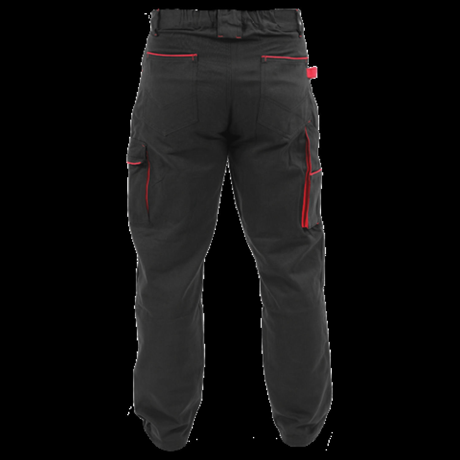 Komforta bikses ir aprīkotas ar septiņām kabatām, ieskaitot divas lielas galvenās kabatas priekšā, dubultu kabatu labajā kājā un papildu kabatu kreisajā kājā ar lapiņu un Velcro stiprinājumu. Tās ir tumšas krāsas ar sarkanām līnijām, kas ne tikai piešķir stilu, bet arī pastiprina kabatu malas, aizsargājot tās no plīsumiem.