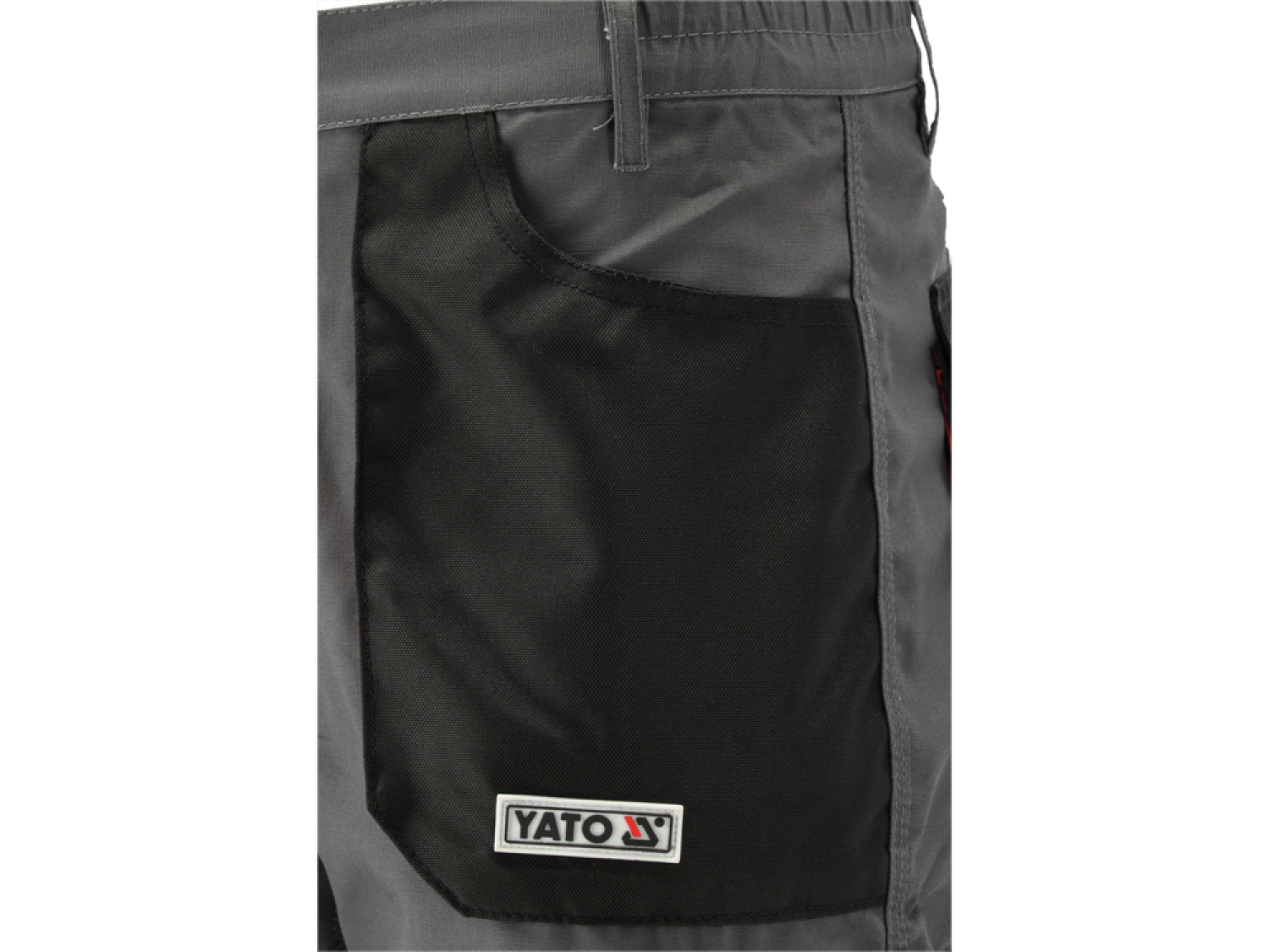Darba bikses YATO modelis YT-80288 ir izstrādātas, lai nodrošinātu komfortu un aizsardzību darba vietā. Tās ir veidotas ar piecām kabatām, tostarp trim kabatām ar velcro aizdari un speciālām kabatām ceļu spilveniem. Galvenais materiāls ir kokvilnas un poliestera maisījums, kas nodrošina optimālu izturību un gaisa cirkulāciju.