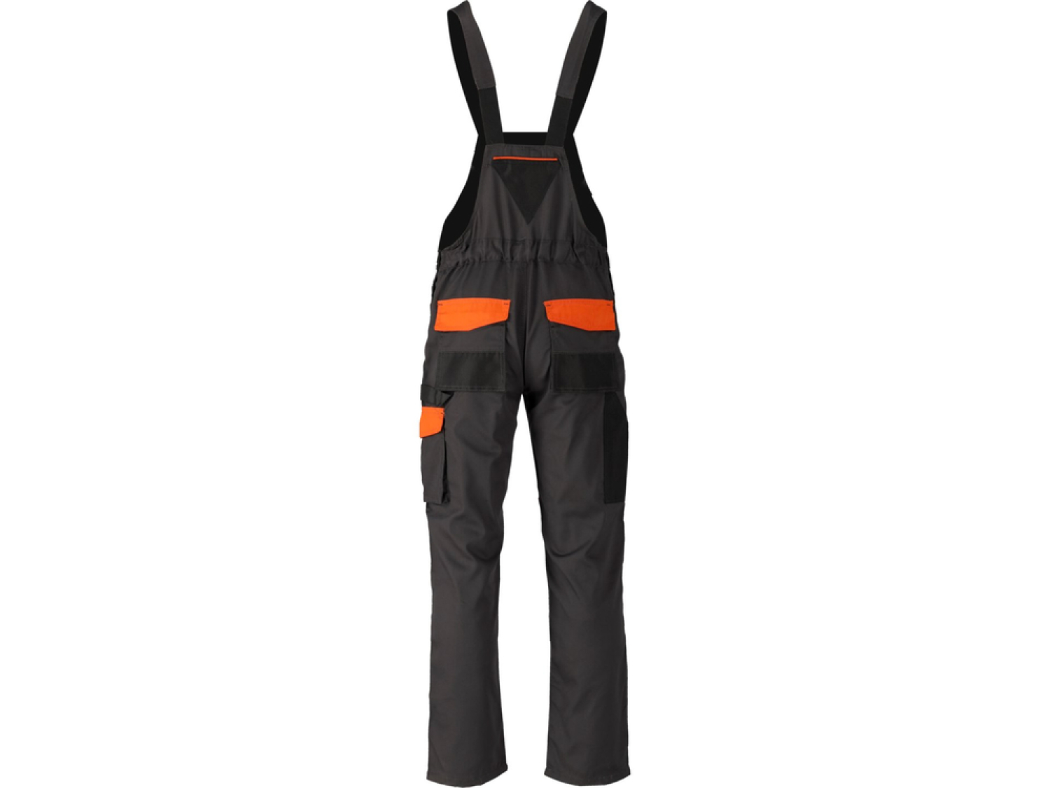 Darba bikses ar siksnām ir aprīkotas ar trīspakāpju šuvēm un izturīgu materiāla kombināciju. Galvenais materiāls ir 65% poliestera un 35% kokvilnas maisījums, kas ir viegls un piemērots siltākām dienām. Biksēs ir:
