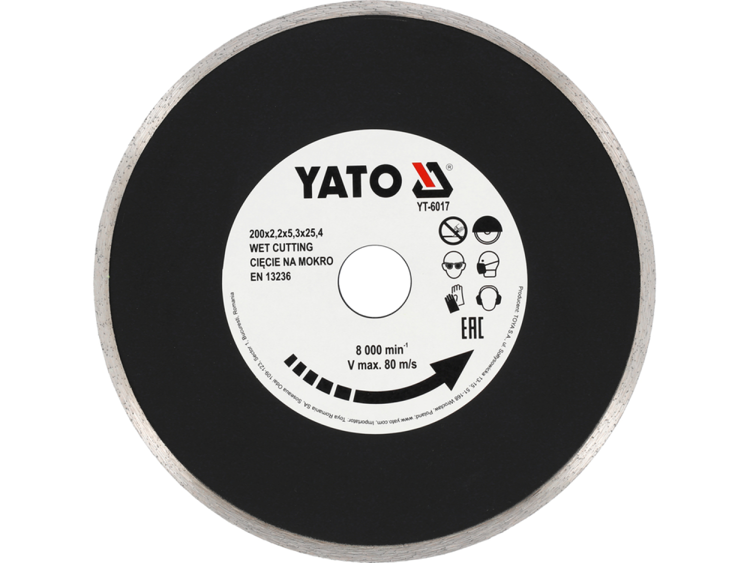 YATO dimanta cietais griešanas disks YT-6017 ir izstrādāts, lai nodrošinātu efektīvu un precīzu griešanu mitros apstākļos.
