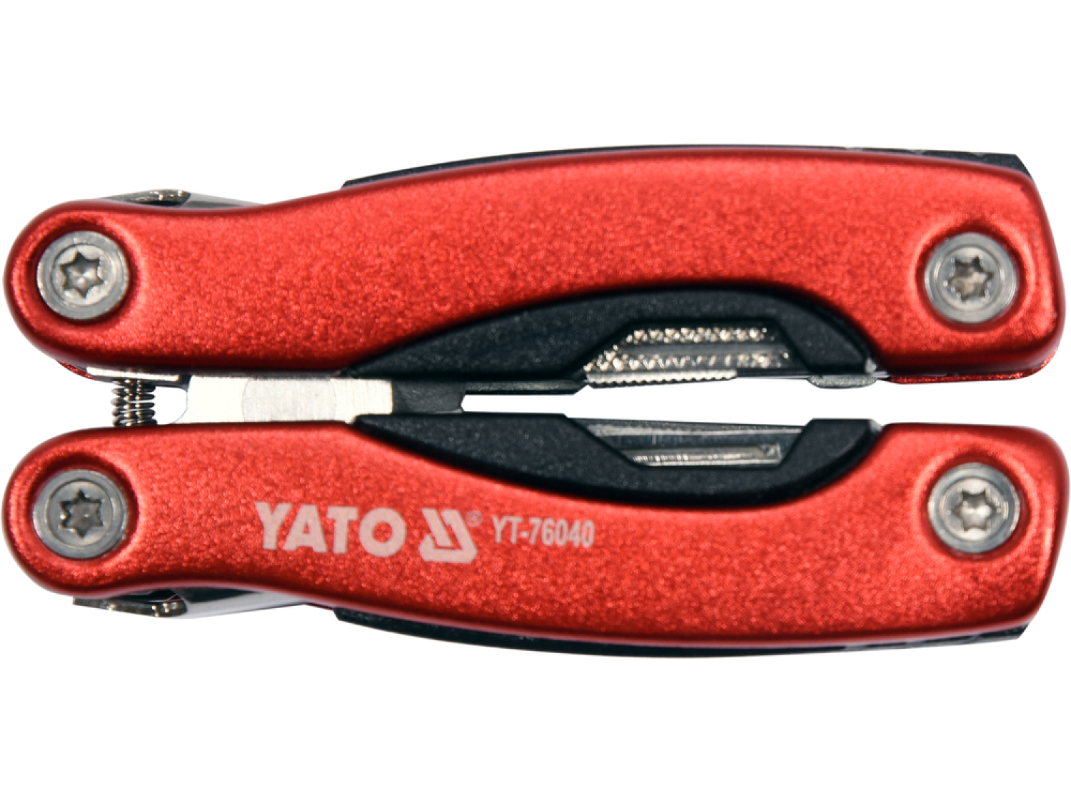 9 funkcijas: knaibles, nazis, plakanais skrūvgriezis, PH skrūvgriezis, zāģis, kabeļu griezējs, vīle, skrāpis, pudeļu attaisītājs