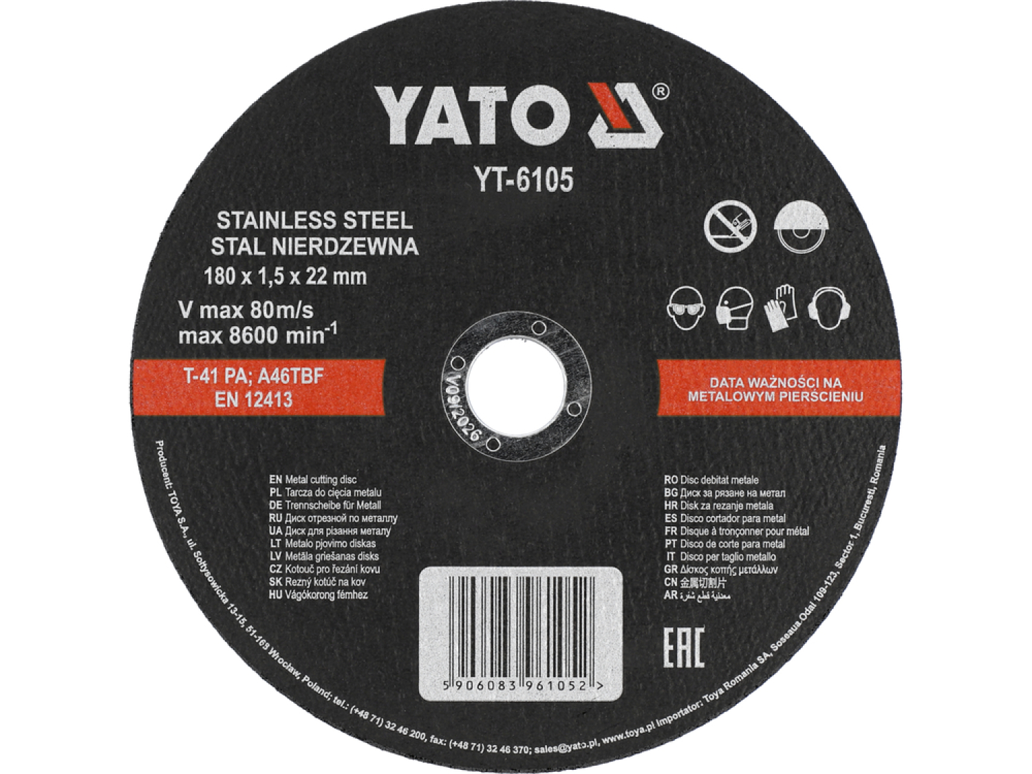 Nerūsējošā tērauda griezējdisks YATO YT-6105 ir paredzēts efektīvai nerūsējošā un parastā tērauda apstrādei. Šis diska modelis ir izgatavots no augstas kvalitātes materiāliem, kas nodrošina izcilu griešanas efektivitāti un zemu patēriņu.